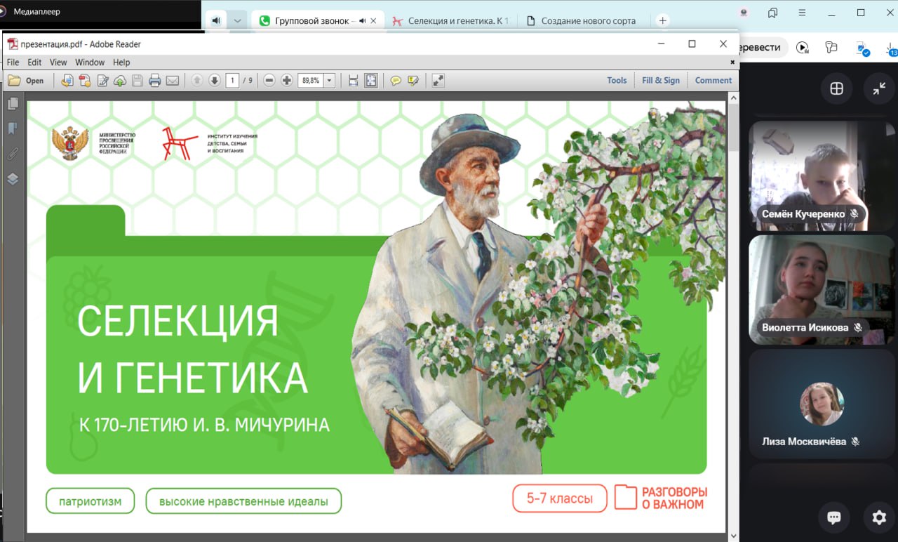 Сегодня, 10 ноября, учащиеся учащиеся нашей школы приняли участие в занятии из внеурочного цикла «Разговоры о важном», которое было посвящено важной теме: «Селекция и генетика. К 170-летию И.В. Мичурина».